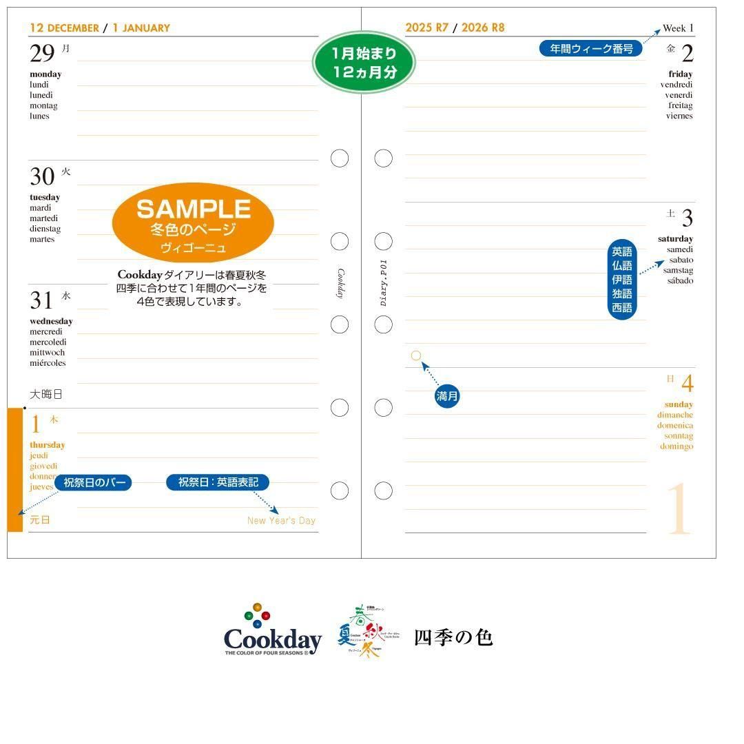 ■ 1週間2ページ。1日ごとのブロックには、季節で変わるケイ線が引かれています。
