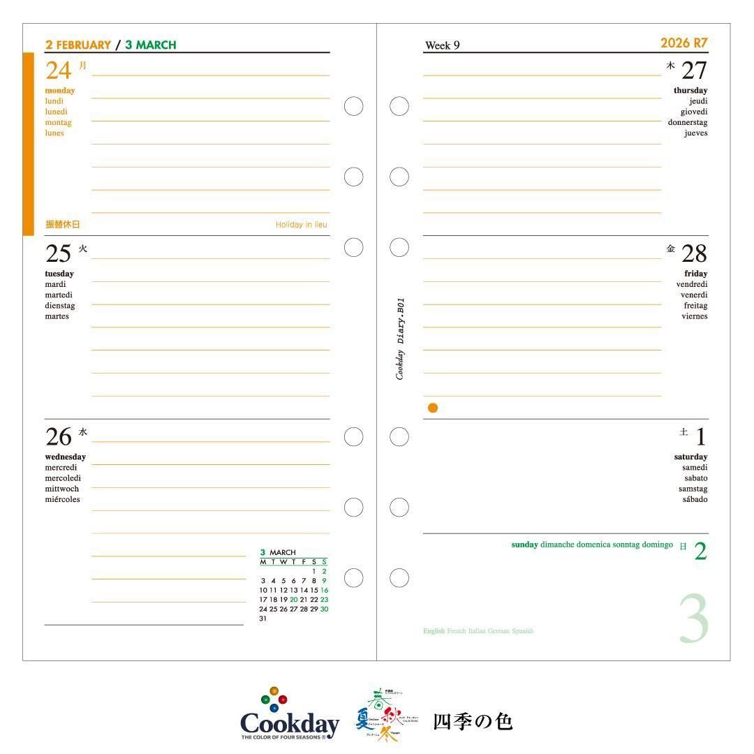 ■ 1週間2ページ。1日ごとのブロックには、季節で変わるケイ線が引かれています。
