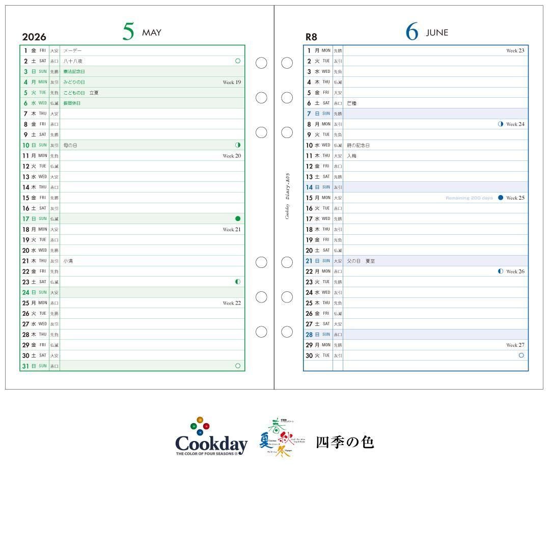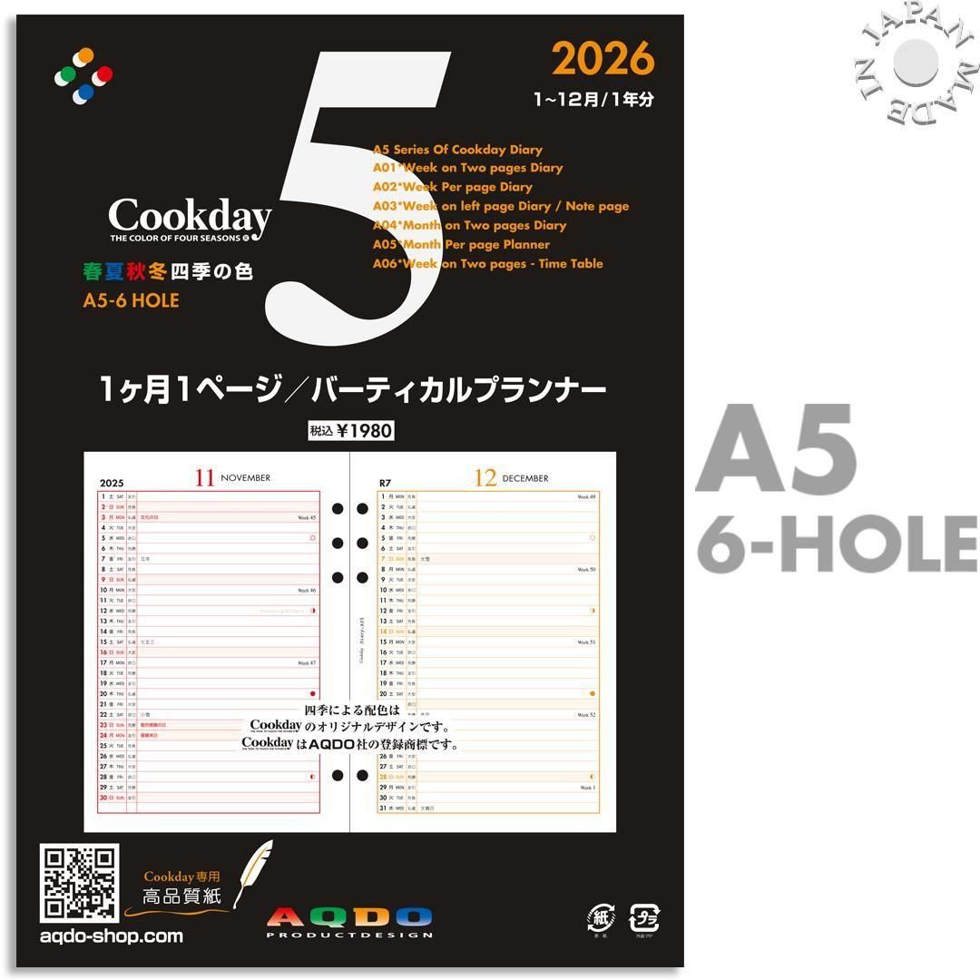 2026年版 Cookday A5サイズ 1ヶ月1ページ バーティカルプランナー A05